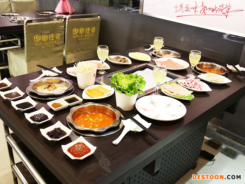 御厨传奇涮烤自助火锅采用智能化的电脑集成设备,触摸面板进行温控和时控,实现一键操作,既省时又省力。再加上加热智能设备具有的陶瓷顶板,电磁感应加热,使用起来洁净无油烟,更加安全方便。御厨传奇涮烤自助火锅的电气化设备,采用分层加热技术,让消费者无需等待,速度快。御厨传奇从配菜到烤肉、火锅,再到上桌,一系列过程全部采用智能电气化设备,一键完成多种复杂操作。在保证口味和品质的同时,更大地节省了人力物力。