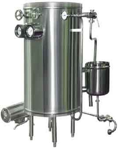 超高温瞬时灭菌机,在主机内装着压力容器—高温桶,用作充盛压力蒸汽。桶外的主要设置是螺旋形双套管,用作对进、出物料的冷热交换;桶内的主要设置时螺旋形单管,用作间接受热。 物料的灭菌过程。物料通过供料泵进入双套盘管的外层流道、由内层流出的热料间接加热而得到预热,当物料进入设置在高温桶内的高温盘管时,由于桶内的蒸汽间接加热而被加热到需要的灭菌温度,然后在桶外单旋管内保温而使物料细菌被杀灭,当回到双套盘管时,物料便进入内层流道,被外层冷料所冷却,从而使出料温度显著下降(一般低于65℃)。如工艺上需要提高或降低出料温度时,可启用角式截止阀,让它接通热源(蒸汽)或冷源(水或冰水等)让它们进入双套管下端的外层流道。 节流阀是可以调节的,一方面让物料维持在一定的压力之下, 使其沸点温度提高,以防止汽化:另一方面,也作调节流量用。物料最后经三通旋塞除料。该旋塞下端接着旋管,其出口将着贮槽,当需要时,可旋动旋管对准溢流管。进料三通旋塞的上端与贮槽接通,下端则与料源管道相连接。欢迎新老客户洽谈合作 ,共同发展131 0383 3308