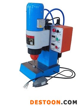 JM3TQ-B是气动类小型径向铆接机(旋铆机),除应用有国际先进的11瓣梅花径向铆接技术外,该机采用头部丝杆升降粗调,加大了工作台面,气路加装双向调节阀,有效控制铆接速度。机头部分应用丝杆升降系统,有效实现机床粗调。电控部分加装数显时间继电器、数显数量控制器,方便操控。气压元件全部采用进口件,质量可靠,另外增加双向调速阀,方便铆接参数调整。由于采用径向结构,铆接工件表面美观,铆接过程稳定无晃动。 工作台加工有T型槽和定位孔,方便工装夹具定位夹紧。(图片未更新)。气路加装气雾润滑和气体滤水功能。