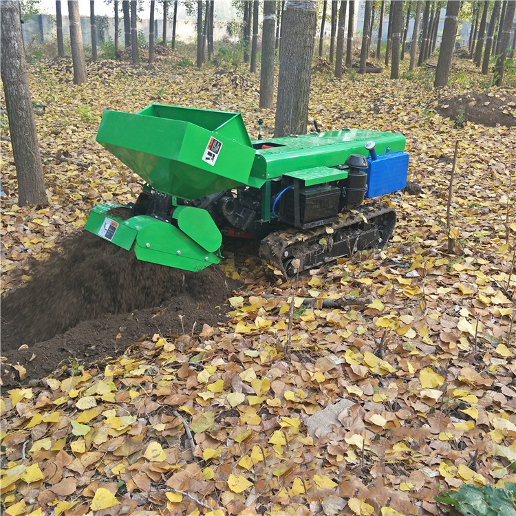2019新款式履带式开沟施肥回填一体机,可以实现水溶性液体肥料和颗粒肥粉状有机肥同时播撒 ,深松深埋地下并完成回填,多元化施肥,一机多用,节省人工。目前,我国经济作物机械化程度比较低,劳动成本越来越高,传统施肥方式施肥深度较浅,造成作物根系上浮,使作物的抗旱、抗病能力降低,严重影响作物的产量和果品品质,因此我公司研制了自走式多功能开沟施肥机,该机是我公司推出的新发明专利产品,能根据作物生长的不同需求把肥料送到作物根部。提高了作物对养分的吸收能力和肥料的利用率,并且可一机多用。有五大功能:开沟施肥自动回填一次性完成(除土杂肥),单独开沟,更换回填和旋耕装置后可进行回填和旋耕作业,单独除草既减轻了果农劳动强度,提高了生产效率,又节约了劳动和生产成本,机器体积小,重心低,操作灵便,可原地转向,适用于葡萄,果树,枸杞等经济作物的开沟施肥作业