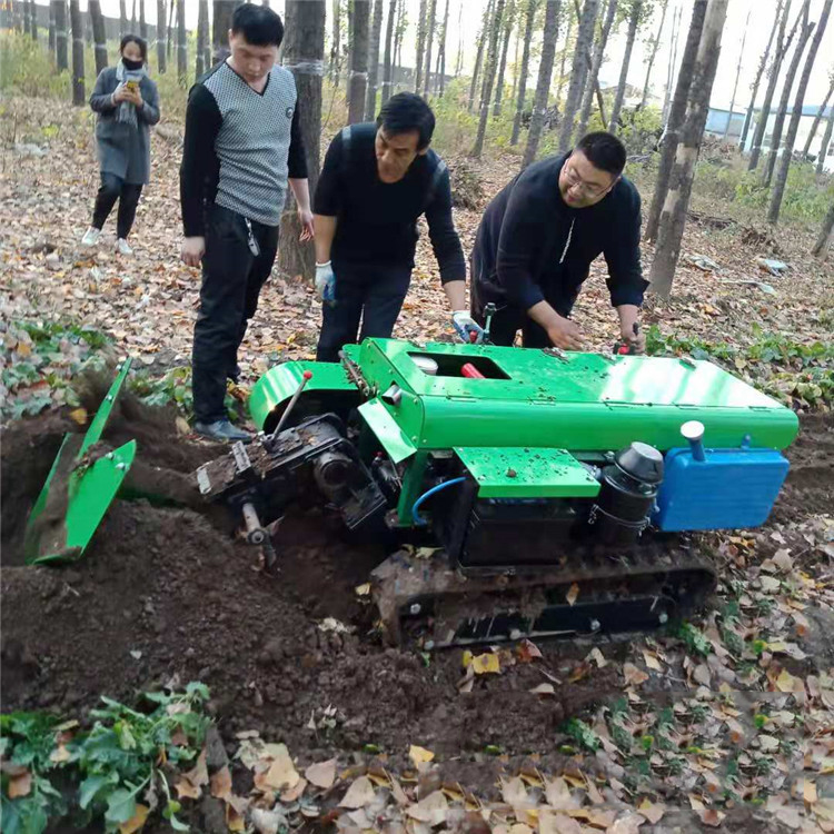 2019新款式履带式开沟施肥回填一体机,可以实现水溶性液体肥料和颗粒肥粉状有机肥同时播撒 ,深松深埋地下并完成回填,多元化施肥,一机多用,节省人工。目前,我国经济作物机械化程度比较低,劳动成本越来越高,传统施肥方式施肥深度较浅,造成作物根系上浮,使作物的抗旱、抗病能力降低,严重影响作物的产量和果品品质,因此我公司研制了自走式多功能开沟施肥机,该机是我公司推出的新发明专利产品,能根据作物生长的不同需求把肥料送到作物根部。提高了作物对养分的吸收能力和肥料的利用率,并且可一机多用。有五大功能:开沟施肥自动回填一次性完成(除土杂肥),单独开沟,更换回填和旋耕装置后可进行回填和旋耕作业,单独除草既减轻了果农劳动强度,提高了生产效率,又节约了劳动和生产成本,机器体积小,重心低,操作灵便,可原地转向,适用于葡萄,果树,枸杞等经济作物的开沟施肥作业
