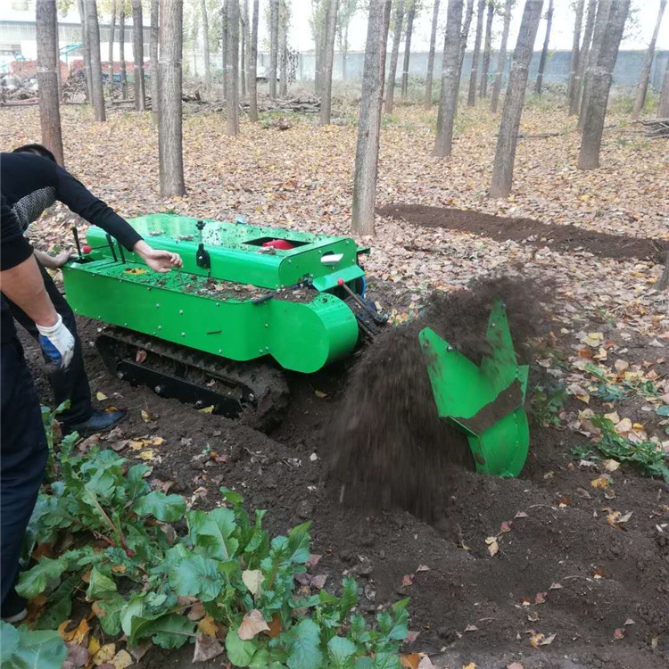2019新款式履带式开沟施肥回填一体机,可以实现水溶性液体肥料和颗粒肥粉状有机肥同时播撒 ,深松深埋地下并完成回填,多元化施肥,一机多用,节省人工。目前,我国经济作物机械化程度比较低,劳动成本越来越高,传统施肥方式施肥深度较浅,造成作物根系上浮,使作物的抗旱、抗病能力降低,严重影响作物的产量和果品品质,因此我公司研制了自走式多功能开沟施肥机,该机是我公司推出的新发明专利产品,能根据作物生长的不同需求把肥料送到作物根部。提高了作物对养分的吸收能力和肥料的利用率,并且可一机多用。有五大功能:开沟施肥自动回填一次性完成(除土杂肥),单独开沟,更换回填和旋耕装置后可进行回填和旋耕作业,单独除草既减轻了果农劳动强度,提高了生产效率,又节约了劳动和生产成本,机器体积小,重心低,操作灵便,可原地转向,适用于葡萄,果树,枸杞等经济作物的开沟施肥作业