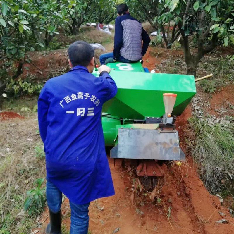 2019新款式履带式开沟施肥回填一体机,可以实现水溶性液体肥料和颗粒肥粉状有机肥同时播撒 ,深松深埋地下并完成回填,多元化施肥,一机多用,节省人工。目前,我国经济作物机械化程度比较低,劳动成本越来越高,传统施肥方式施肥深度较浅,造成作物根系上浮,使作物的抗旱、抗病能力降低,严重影响作物的产量和果品品质,因此我公司研制了自走式多功能开沟施肥机,该机是我公司推出的新发明专利产品,能根据作物生长的不同需求把肥料送到作物根部。提高了作物对养分的吸收能力和肥料的利用率,并且可一机多用。有五大功能:开沟施肥自动回填一次性完成(除土杂肥),单独开沟,更换回填和旋耕装置后可进行回填和旋耕作业,单独除草既减轻了果农劳动强度,提高了生产效率,又节约了劳动和生产成本,机器体积小,重心低,操作灵便,可原地转向,适用于葡萄,果树,枸杞等经济作物的开沟施肥作业