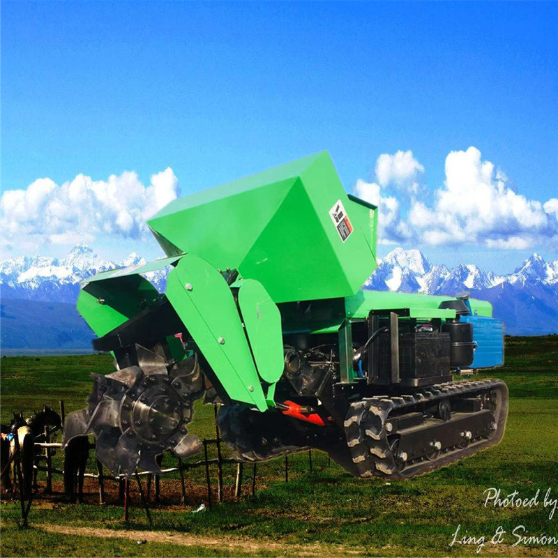2019新款式履带式开沟施肥回填一体机,可以实现水溶性液体肥料和颗粒肥粉状有机肥同时播撒 ,深松深埋地下并完成回填,多元化施肥,一机多用,节省人工。目前,我国经济作物机械化程度比较低,劳动成本越来越高,传统施肥方式施肥深度较浅,造成作物根系上浮,使作物的抗旱、抗病能力降低,严重影响作物的产量和果品品质,因此我公司研制了自走式多功能开沟施肥机,该机是我公司推出的新发明专利产品,能根据作物生长的不同需求把肥料送到作物根部。提高了作物对养分的吸收能力和肥料的利用率,并且可一机多用。有五大功能:开沟施肥自动回填一次性完成(除土杂肥),单独开沟,更换回填和旋耕装置后可进行回填和旋耕作业,单独除草既减轻了果农劳动强度,提高了生产效率,又节约了劳动和生产成本,机器体积小,重心低,操作灵便,可原地转向,适用于葡萄,果树,枸杞等经济作物的开沟施肥作业