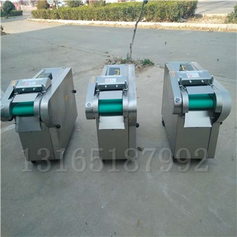 主要有机架、输送带、压菜带、切片机构组成。切片用于果蔬类硬菜的切片,片厚可在一定范围内自由调节,竖刀部分可将叶类软菜或切好的片加工成不同规格的块、丁、菱形等形状。切菜长度在一定范围内调整。因模拟手工切菜原理,加工表面平整规则,可切蔬菜组织完好,保持新鲜。