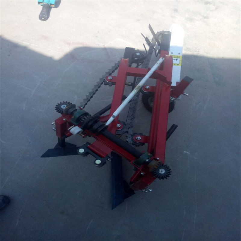 新型拖拉机带动的花生收获机,特有的夹持链设计,可以使收获过程,收获效果更完善,本品具有如下特点:作业流程完整有序,在作业时完成扶秧、挖掘、碎土、抖土和花生的铺放晾晒任务,且损失率低,作业效率高,收获成本低。