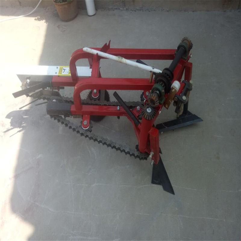新型拖拉机带动的花生收获机,特有的夹持链设计,可以使收获过程,收获效果更完善,本品具有如下特点:作业流程完整有序,在作业时完成扶秧、挖掘、碎土、抖土和花生的铺放晾晒任务,且损失率低,作业效率高,收获成本低。