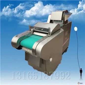 主要有机架、输送带、压菜带、切片机构组成。切片用于果蔬类硬菜的切片,片厚可在一定范围内自由调节,竖刀部分可将叶类软菜或切好的片加工成不同规格的块、丁、菱形等形状。切菜长度在一定范围内调整。因模拟手工切菜原理,加工表面平整规则,可切蔬菜组织完好,保持新鲜。