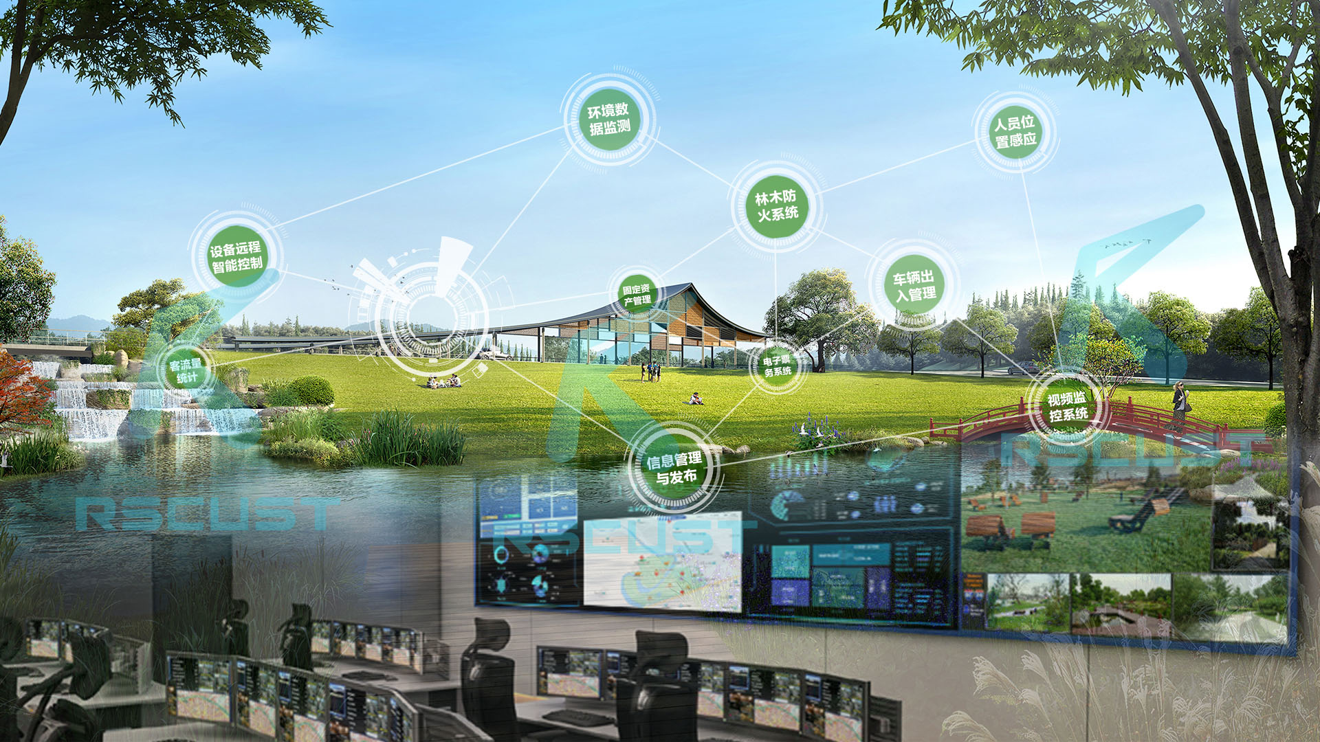 公园中控系统是指利用物联网技术、智能传感器、网络通讯技术、智能模块和控制软件,包括但不限于对园区内部和周边环境、智能设备、户外休息设施、灯光照明、户外场景、户外电源、广播设备、灌溉系统、多媒体设备、信息发布大屏等实现集成统一的管理与控制,旨在为管理人员收集数据信息进行及时准确的分析处理,实现远程控的同时也提高公园的管理效率。