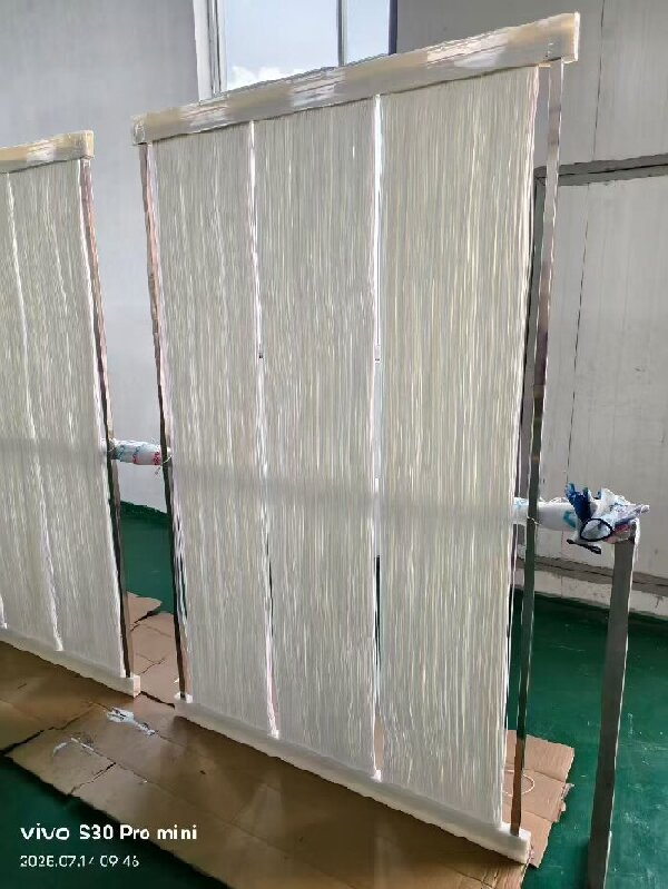 金泽能复合增强型PVDF中空纤维复合膜,所过滤的水体为活性污泥和污水的混合液,是膜生物反应器工艺的核心产品。金泽能膜件膜丝分布均匀,结构设计合理,结合膜架设计,保证了曝气的有效性,减缓了膜污染速度,延长了清洗周期。气水擦洗均匀,能耗低清洗彻底,频率低。