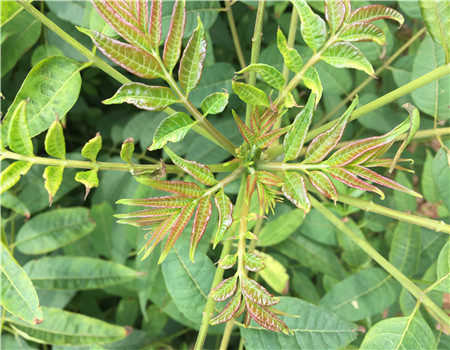 红油香椿一般生长在北方地区,很多人知道香椿有红色的和绿色的,其实红色和绿色在香椿刚出芽的时候区别大,红色的长到长度也会变绿色的,另外还有一种香椿是黑油椿,黑油椿主要分布在安徽太和,现在很多香椿酱以红油香椿为主!