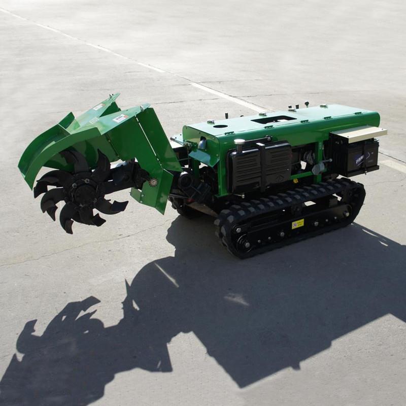 2019新款式履带式开沟施肥回填一体机,可以实现水溶性液体肥料和颗粒肥粉状有机肥同时播撒 ,深松深埋地下并完成回填,多元化施肥,一机多用,节省人工。目前,我国经济作物机械化程度比较低,劳动成本越来越高,传统施肥方式施肥深度较浅,造成作物根系上浮,使作物的抗旱、抗病能力降低,严重影响作物的产量和果品品质,因此我公司研制了自走式多功能开沟施肥机,该机是我公司推出的新发明专利产品,能根据作物生长的不同需求把肥料送到作物根部。提高了作物对养分的吸收能力和肥料的利用率,并且可一机多用。有五大功能:开沟施肥自动回填一次性完成(除土杂肥),单独开沟,更换回填和旋耕装置后可进行回填和旋耕作业,单独除草既减轻了果农劳动强度,提高了生产效率,又节约了劳动和生产成本,机器体积小,重心低,操作灵便,可原地转向,适用于葡萄,果树,枸杞等经济作物的开沟施肥作业