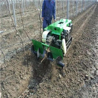 2019新款式履带式开沟施肥回填一体机,可以实现水溶性液体肥料和颗粒肥粉状有机肥同时播撒 ,深松深埋地下并完成回填,多元化施肥,一机多用,节省人工。目前,我国经济作物机械化程度比较低,劳动成本越来越高,传统施肥方式施肥深度较浅,造成作物根系上浮,使作物的抗旱、抗病能力降低,严重影响作物的产量和果品品质,因此我公司研制了自走式多功能开沟施肥机,该机是我公司推出的新发明专利产品,能根据作物生长的不同需求把肥料送到作物根部。提高了作物对养分的吸收能力和肥料的利用率,并且可一机多用。有五大功能:开沟施肥自动回填一次性完成(除土杂肥),单独开沟,更换回填和旋耕装置后可进行回填和旋耕作业,单独除草既减轻了果农劳动强度,提高了生产效率,又节约了劳动和生产成本,机器体积小,重心低,操作灵便,可原地转向,适用于葡萄,果树,枸杞等经济作物的开沟施肥作业