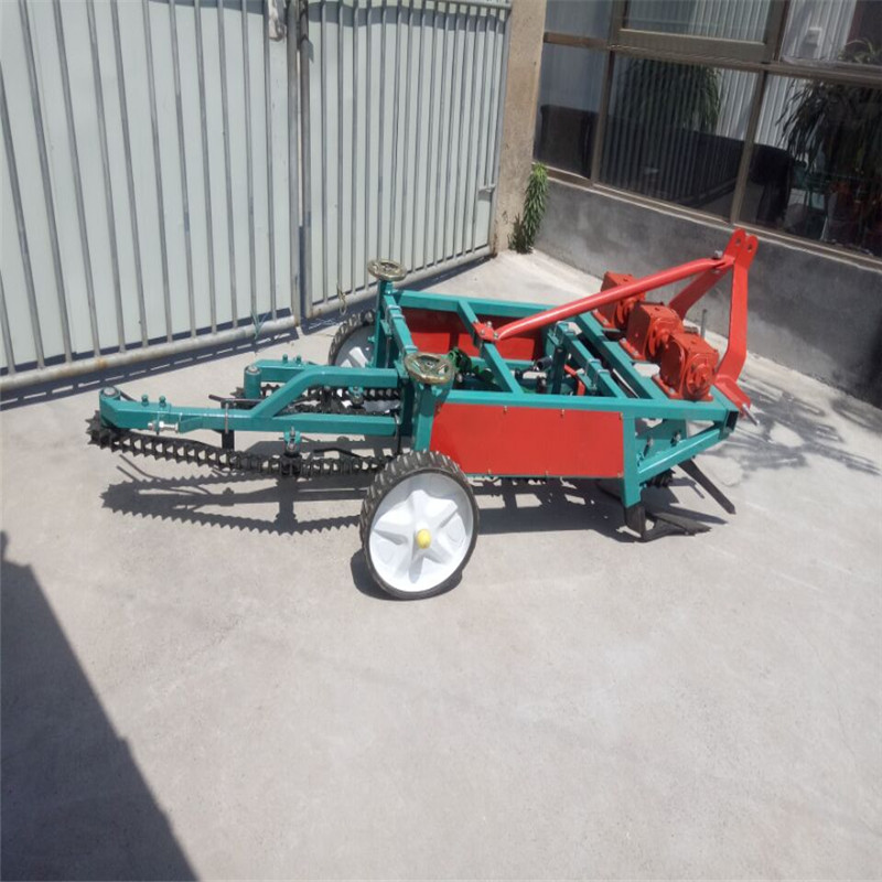 新型拖拉机带动的花生收获机,特有的夹持链设计,可以使收获过程,收获效果更完善,本品具有如下特点:作业流程完整有序,在作业时完成扶秧、挖掘、碎土、抖土和花生的铺放晾晒任务,且损失率低,作业效率高,收获成本低。