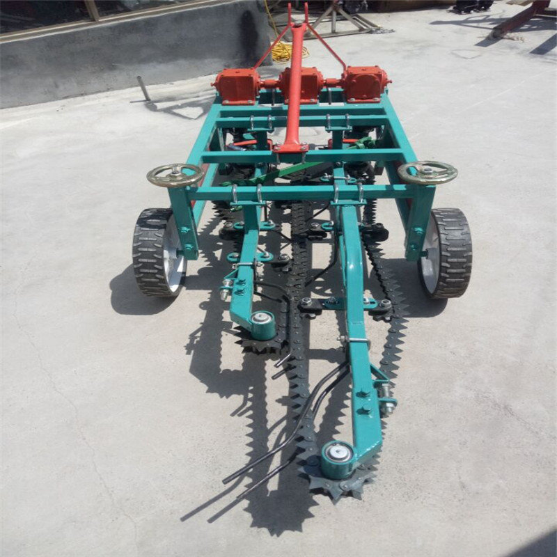 新型拖拉机带动的花生收获机,特有的夹持链设计,可以使收获过程,收获效果更完善,本品具有如下特点:作业流程完整有序,在作业时完成扶秧、挖掘、碎土、抖土和花生的铺放晾晒任务,且损失率低,作业效率高,收获成本低。