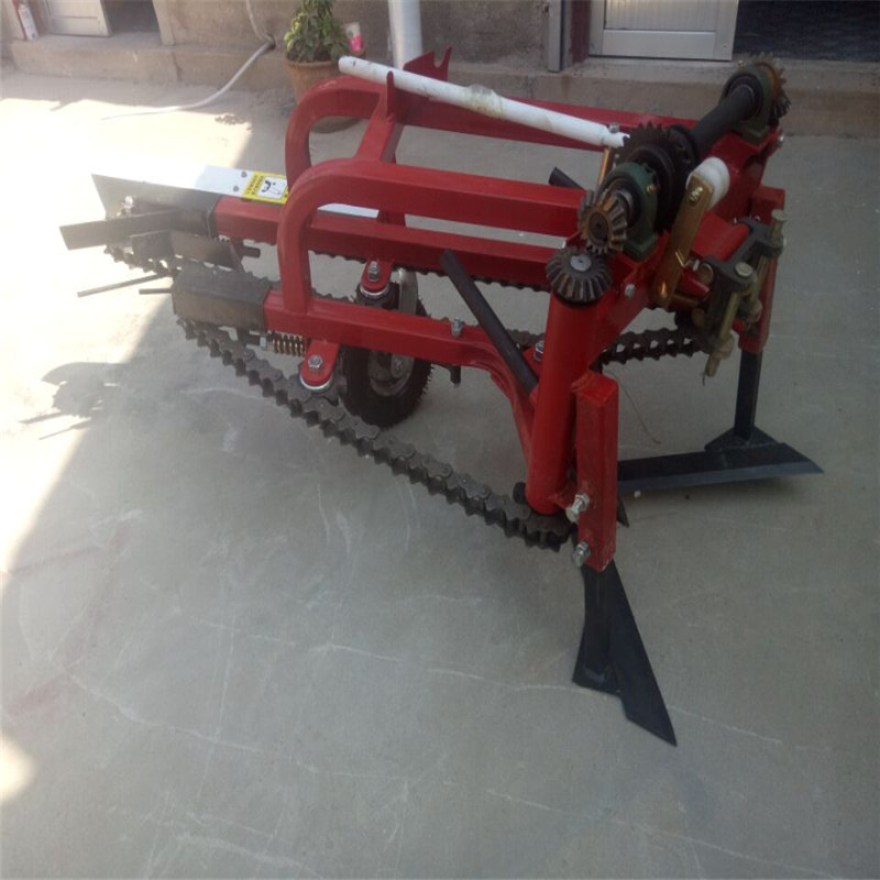 新型拖拉机带动的花生收获机,特有的夹持链设计,可以使收获过程,收获效果更完善,本品具有如下特点:作业流程完整有序,在作业时完成扶秧、挖掘、碎土、抖土和花生的铺放晾晒任务,且损失率低,作业效率高,收获成本低。