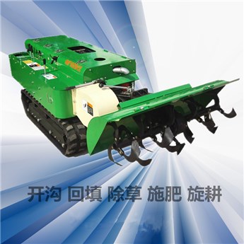 2019新款式履带式开沟施肥回填一体机,可以实现水溶性液体肥料和颗粒肥粉状有机肥同时播撒 ,深松深埋地下并完成回填,多元化施肥,一机多用,节省人工。目前,我国经济作物机械化程度比较低,劳动成本越来越高,传统施肥方式施肥深度较浅,造成作物根系上浮,使作物的抗旱、抗病能力降低,严重影响作物的产量和果品品质,因此我公司研制了自走式多功能开沟施肥机,该机是我公司推出的新发明专利产品,能根据作物生长的不同需求把肥料送到作物根部。提高了作物对养分的吸收能力和肥料的利用率,并且可一机多用。有五大功能:开沟施肥自动回填一次性完成(除土杂肥),单独开沟,更换回填和旋耕装置后可进行回填和旋耕作业,单独除草既减轻了果农劳动强度,提高了生产效率,又节约了劳动和生产成本,机器体积小,重心低,操作灵便,可原地转向,适用于葡萄,果树,枸杞等经济作物的开沟施肥作业