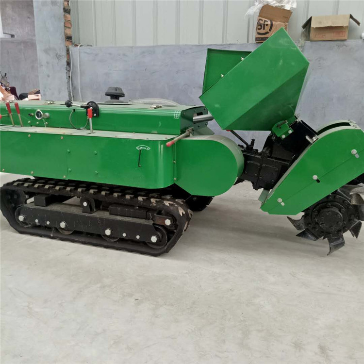 2019新款式履带式开沟施肥回填一体机,可以实现水溶性液体肥料和颗粒肥粉状有机肥同时播撒 ,深松深埋地下并完成回填,多元化施肥,一机多用,节省人工。目前,我国经济作物机械化程度比较低,劳动成本越来越高,传统施肥方式施肥深度较浅,造成作物根系上浮,使作物的抗旱、抗病能力降低,严重影响作物的产量和果品品质,因此我公司研制了自走式多功能开沟施肥机,该机是我公司推出的新发明专利产品,能根据作物生长的不同需求把肥料送到作物根部。提高了作物对养分的吸收能力和肥料的利用率,并且可一机多用。有五大功能:开沟施肥自动回填一次性完成(除土杂肥),单独开沟,更换回填和旋耕装置后可进行回填和旋耕作业,单独除草既减轻了果农劳动强度,提高了生产效率,又节约了劳动和生产成本,机器体积小,重心低,操作灵便,可原地转向,适用于葡萄,果树,枸杞等经济作物的开沟施肥作业